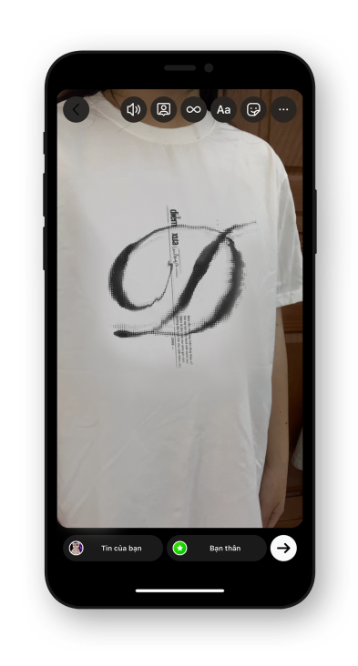 • 03 Chĩa camera vào hình trên áo và selfie :)